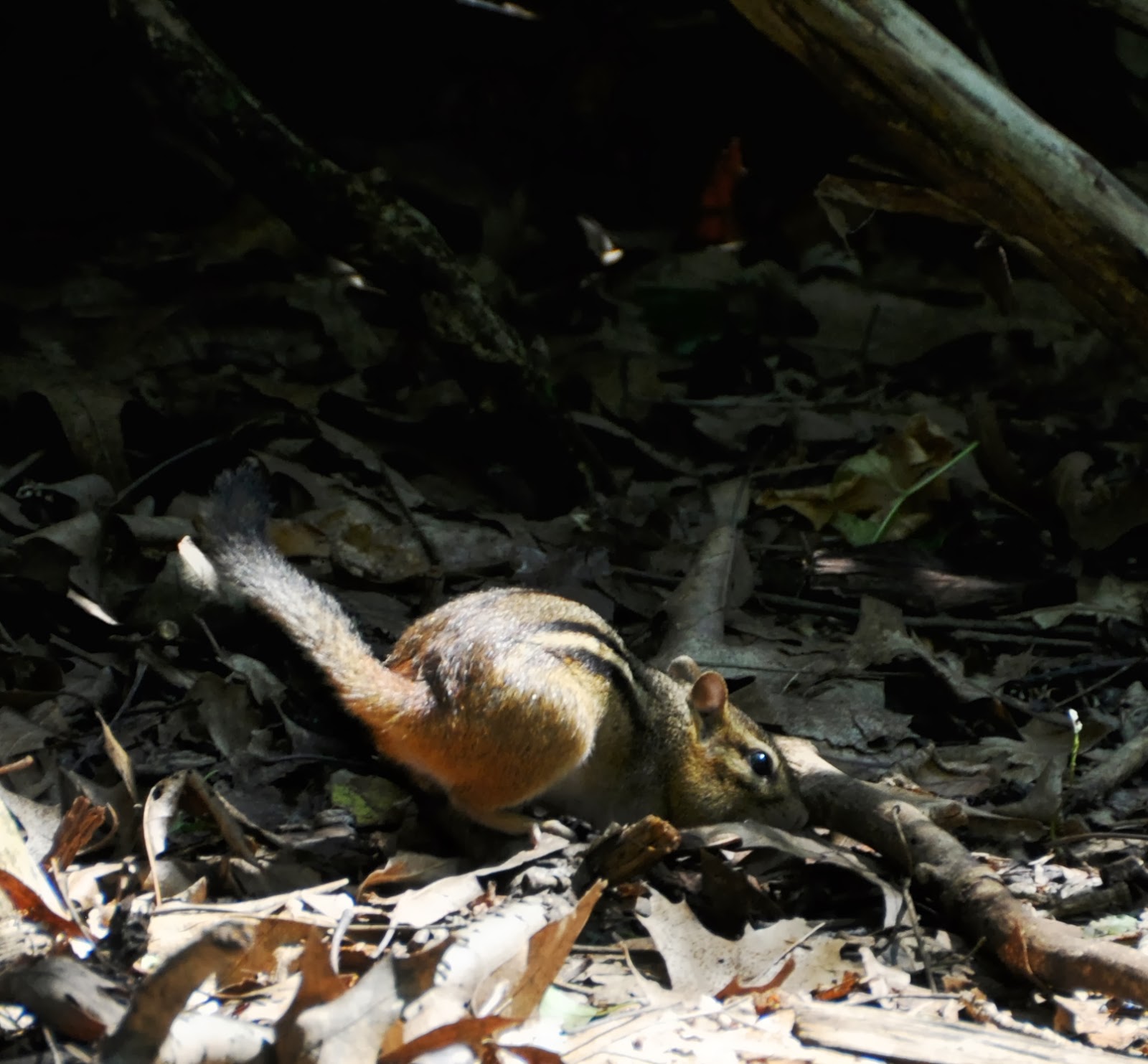 | This Chipmunk is looking for nuts to take back to his burrow. |